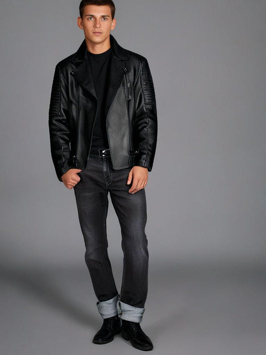 Dresser Men's Classic Black Leather Jacket / მამაკაცის ტყავის ჟაკეტი